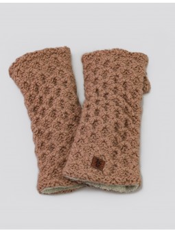 Die Pulswärmer sind aus Schafwolle gehäkelt und innen mit einem weichen Fleece gefüttert.